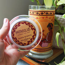 These candles were designed by Kale and produced by Oasis Scents, each part inspired by the book. Achilles smells of hyacinth, pomegranate and sandalwood. Patroclus smells of cypress, fig and pear.
